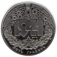Монета Корсунь-Шевченківська битва (до 70-річчя визволення України від фашистських загарбників) 5 грн. 2014 року