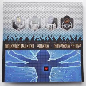 На аверсі монети розміщено: ліворуч: рік карбування монети 2018, малий Державний Герб України та написи UKRAINE/УКРАЇНА (вертикально); праворуч - номінал монети П`ЯТЬ ГРИВЕНЬ, позначення металу та маси монети в чистоті - Ag 999 15,55 (вертикально); на тлі стилізованого зображення геліоцентричної системи світу як символу розвитку астрономії та філософії - рівняння Ейнштейна E=mc (зв`язок між енергією та масою будь-якої речовини), що символізує теорію відносності, під якою на фіолетовому тлі, заповненому зображенням подвійної спіралі - символу генома людини (використано тамподрук), - Вітрувіанська людина з малюнка Леонардо да Вінчі, що символізує `канонічні пропорції` (локальна позолота). Унизу праворуч розміщено логотип Банкнотно-монетного двору Національного банку України.На реверсі монети розміщено: на тлі стилізованої схеми нуклеїнових кислот - годинник як символ вічності, часу та його швидкоплинності, у центрі якого - дзеркальні силуети чоловіка і жінки, над якими на чорному тлі зображено переплетені кольорові символи жіночої та чоловічої статі (використано тамподрук); вертикальні написи: THE HUMAN o TIME o SPACE (ліворуч) та ЛЮДИНА o ЧАС o ПРОСТІР (праворуч).