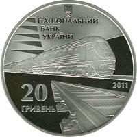 Срібна монета 150-річчя діяльності українських залізниць 20 грн. 2011 року