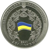 На аверсе монеты размещены: вверху малый Государственный Герб Украины и надпись полукругом НАЦИОНАЛЬНЫЙ БАНК УКРАИНЫ, внизу год чеканки монеты, номинал - 2011/ДВЕ ГРИВНЫ, логотип Монетного двора Национального банка Украины; в центре изображен Государственный Флаг Украины (элемент отделки - эмаль) в обрамлении стилизованного калинового венка.На реверсе монеты на матовом фоне изображена эмблема Содружества Независимых Государств, под которой размещена надпись 20/ЛЕТ, и вверху полукругом - СОДРУЖЕСТВО НЕЗАВИСИМЫХ ГОСУДАРСТВ.