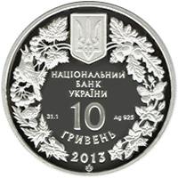 На аверсе монеты в обрамлении венка, образованного из изображений отдельных видов флоры и фауны, размещен малый Государственный Герб Украины и надписи: на монете из серебра - НАЦИОНАЛЬНЫЙ/ БАНК/ УКРАИНЫ/ 10/ ГРИВЕН/ 2013, а также обозначение металла и его пробы - Ag 925, масса в чистоте - 31,1 и логотип Монетного двора Национального банка Украины.На реверсе монеты изображен дрофу и размещены надписи: ДРОФА (вверху) и OTIS TARDA (внизу на фоне травы)
