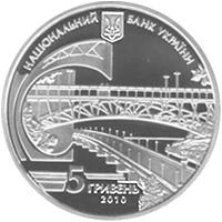 На аверсе монеты размещены: вверху малый Государственный Герб Украины, надпись полукругом НАЦИОНАЛЬНЫЙ БАНК УКРАИНЫ, композиция, символизирующая деятельность ученого в области мостостроения - мост Патона - первый в Европе цельносварной мост, над которым - пешеходный мост над Петровской аллеей, стилизованный лист ватмана (слева), внизу надписи - 5 ГРИВЕНЬ/ 2010.На реверсе монеты изображен портрет Евгения Патона, справа от которого стилизован вспышка, возникающая во время сварки, внизу надписи - ЕВГЕНИЙ/ПАТОН/ 1870 - 1953.