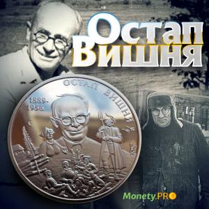 29.10.2014 НБУ увів в обіг пам'ятну монету "Остап Вишня" номіналом 2 гривні.