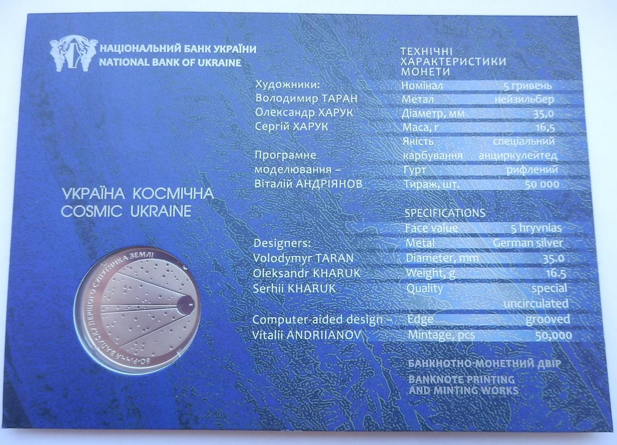 Буклет до монети 60-річчя запуску першого супутника Землі 2017 року