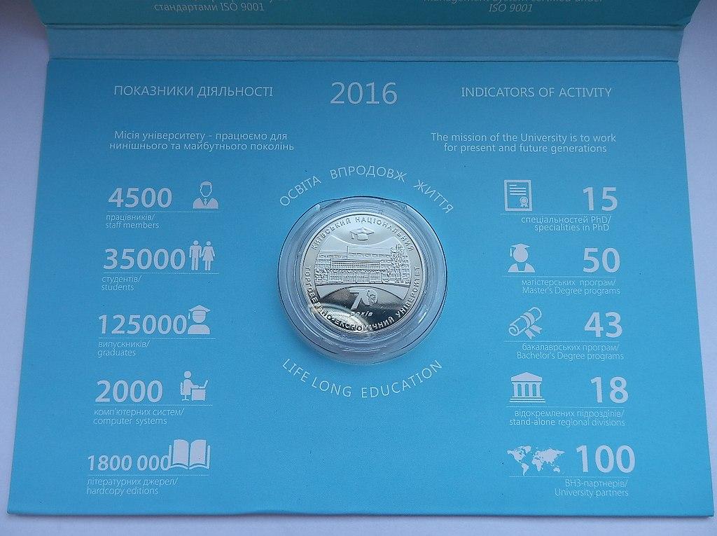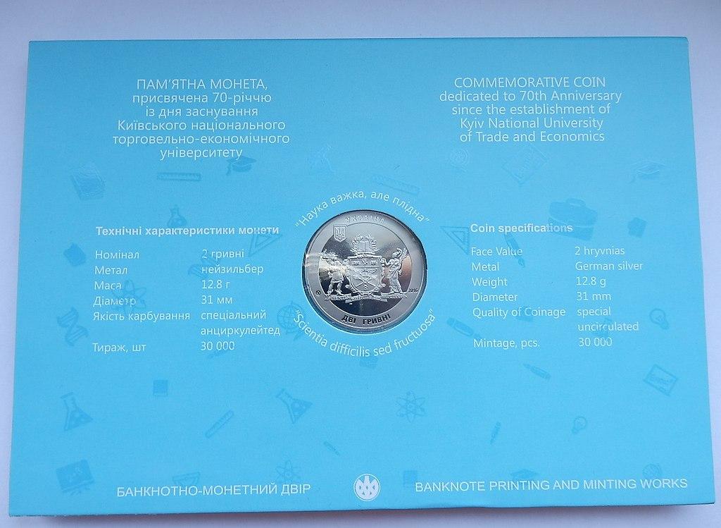 Буклет до монети "70 років Київському національному торговельно-економічному університету" 2016 року