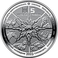 На аверсі монети розміщено: малий Державний Герб України (угорі), написи: УКРАЇНА (під гербом); номінал монети – 5/ГРИВЕНЬ (праворуч від герба); у центрі – символічне колесо життя, що знаменує відродження природи: стилізований міжнародний знак “Радіаційна загроза”, оповитий листям, навколо якого тварини, популяції яких розвиваються у 30-кілометровій зоні відчуження, що стала своєрідним резерватом для розмноження, зокрема лелеки чорного, коня Пржевальського, рисі, зубра, лося, ведмедя бурого; по колу, на дзеркальному тлі написи: ЧОРНОБИЛЬСЬКИЙ РАДІАЦІЙНО-ЕКОЛОГІЧНИЙ БІОСФЕРНИЙ ЗАПОВІДНИК (ліворуч), CHORNOBYL RADIATION AND ECOLOGICAL BIOSPHERE RESERVE; рік карбування – 2023 (унизу); логотип Банкнотно-монетного двору Національного банку України (угорі).На реверсі монети на тлі пейзажу зображено рись (використано тамподрук), над якою ліворуч на дзеркальному тлі написи: РИСЬ/ЄВРАЗІЙСЬКА/EURASIAN LYNX; угорі – рись та рисенята.
