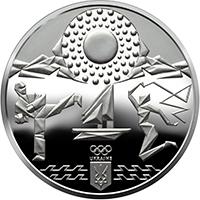 На реверсі монети угорі зображено стилізований сонячний диск на тлі гори Фудзіяма; унизу – логотип Національного олімпійського комітету України; у центрі на дзеркальному тлі стилізовані під мистецтво оригамі зображення, що символізують деякі олімпійські види спорту.