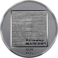 На аверсі монети розміщено: угорі на дзеркальному тлі – малий Державний Герб України, праворуч від якого – напис УКРАЇНА, на матовому тлі – стилізований портрет Казимира Малевича, унизу написи – 2 ГРИВНІ/2019; ліворуч під портретом логотип Банкнотно-монетного двору Національного банку України.На реверсі монети на матовому тлі стилізовано-фактурно зображено художнє полотно, підготовлене до роботи, на тлі якого внизу розміщено напис КАЗИМИР/МАЛЕВИЧ, унизу – роки життя 1879/1935.