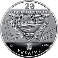 На аверсі монети розміщено: на дзеркальному тлі унизу – малий Державний Герб України та напис УКРАЇНА, праворуч – рік карбування монети 2023, у центрі, на тлі стилізованого майва прапорів – трикутник (віньєтка Георгія Нарбута), що символізує певний культурний, економічний розквіт Української Держави за гетьманату Скоропадського, який обрамляють написи: УКРАЇНІЗАЦІЯ (угорі), ОСВІТА, ГРИВНЯ (з обох боків); угорі на дзеркальному тлі – номінал 2 та графічний знак гривні ?; унизу – логотип Банкнотно-монетного двору Національного банку України (ліворуч).На реверсі монети розміщено: портрет Павла Скоропадського (праворуч), ліворуч від якого – композицію, що символізує події Української революції, угорі на дзеркальному тлі роки життя 1873 • 1945; унизу напис ПАВЛО/СКОРОПАДСЬКИЙ.