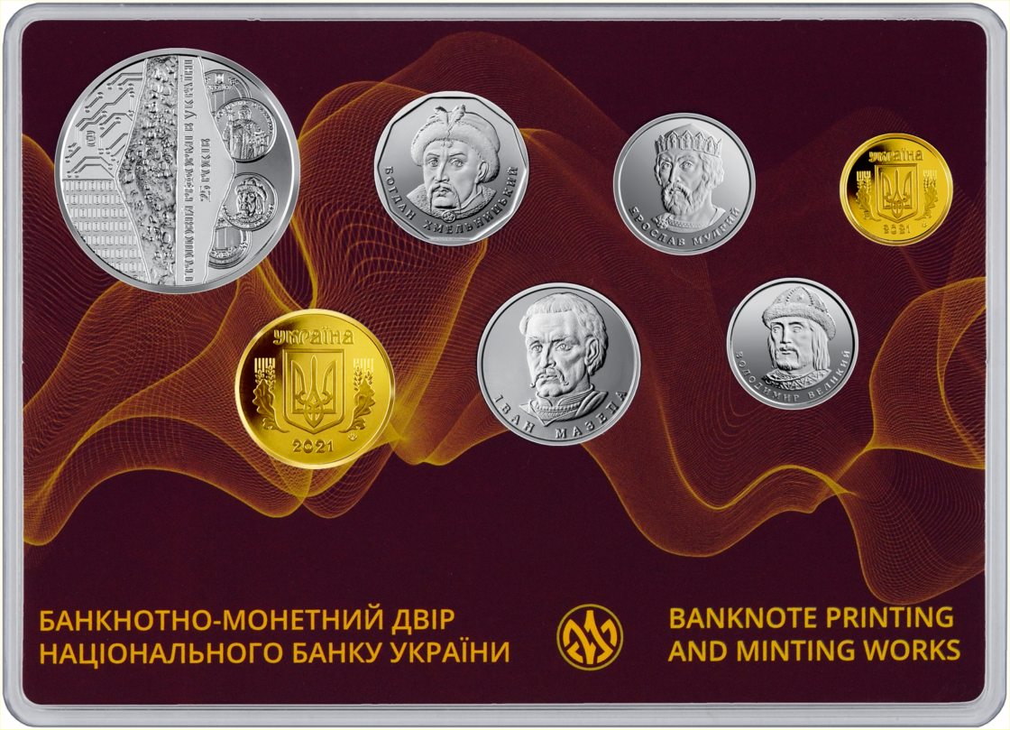 Одним із найважливіших атрибутів державності є власна грошова одиниця. Саме тому золотими літерами у вітчизняну історію вписаний 1996 рік, коли було введено в обіг грошову одиницю України – гривню – спадкоємицю державницьких традицій Київської Русі та Української Народної Республіки. Набір "Монети України" 2021 року присвячений 25-річчю грошової реформи в Україні.