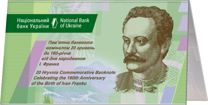 Пам’ятна банкнота номіналом 20 грн до 160-річчя від дня народження І. Франка в сувенірній упаковці
