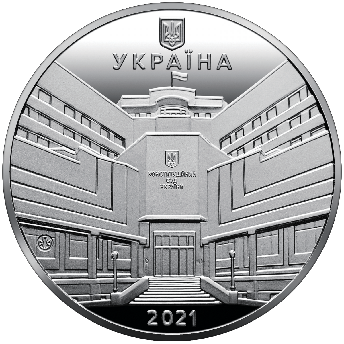 На аверсі медалі розміщено: угорі – малий Державний Герб України, під яким напис УКРАЇНА; у центрі – фрагмент будівлі Конституційного Суду України, яка має вигляд розгорнутої книги і завершується аттиковим поверхом, рік карбування 2021 (унизу); логотип Банкнотно-монетного двору Національного банку України (ліворуч на тлі будівлі).