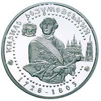 Срібна монета Кирило Розумовський 10 грн. 2003 року