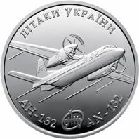 На аверсі монети розміщено: угорі - напис УКРАЇНА, під яким малий Державний Герб України; у центрі - стилізовану композицію: сонце, стилізоване крило та птахи; унизу номінал - 10/ ГРИВЕНЬ, та рік карбування монети - 2018 (праворуч). .На реверсі монети у центрі на дзеркальному тлі зображено літак Ан-132 та написи: ЛІТАКИ УКРАЇНИ (угорі) АН-132, AN-132 (унизу), між якими розміщено логотип `АН`.