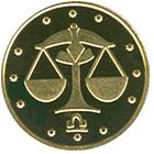 На аверсі монети розміщено коло, діагонально поділене на сектори, які символізують чотири стихії: землю, повітря, воду, вогонь; у центрі кола - стилізоване зображення сонця. Ліворуч від кола - малий Державний Герб України, праворуч - рік карбування монети 2008, позначення металу, його проби Au 999,9, маси 1,24; по колу монети - написи: НАЦІОНАЛЬНИЙ БАНК УКРАЇНИ (угорі), 2 ГРИВНІ (унизу), а також логотип Монетного двору Національного банку України.На реверсі монети розміщено стилізоване зображення терезів в оточенні зірок, під яким - символ знака зодіаку.