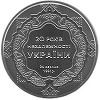 Монета 20 лет независимости Украины 5 грн. 2011 года