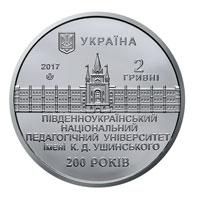 Монета 200 лет Южноукраинском национальном педагогическом университета им. К. Д. Ушинского 2 грн. 2017 года