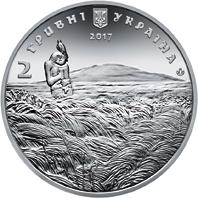 На аверсе монеты изображен курган, украинская степь, каменную бабу, на которой сидит сокол, вверху полукругом размещена: номинал ? 2 ГРИВНЫ, малый Государственный Герб Украины, под которым год чеканки монеты ? 2017) надпись УКРАИНА и логотип Банкнотно-монетного двора Национального банка Украины.На реверсе монеты на зеркальном фоне изображен сокол, что летит, и надписи: Смотрю на небо да и мысль думаю: Почему я не сокол, почему не летаю, Почему мне, Боже,/ты криллів не дал?/Я землю бы покинул и в небо взлетал! и МИХАИЛ/ ПЕТРЕНКО/ 1817? 1862 (внизу).