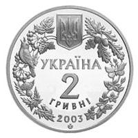 На аверсе монеты в обрамлении венка, образованного из изображений отдельных видов флоры и фауны, 1розміщено малый Государственный Герб Украины и надписи в четыре строки: УКРАИНА, 2 ГРИВНЫ, 2003. и логотип Монетного двора Национального банка Украины.На реверсе монеты изображен зубра,вокруг – круговые надписи: ЗУБР (вверху) и BISON BONASUS (внизу).