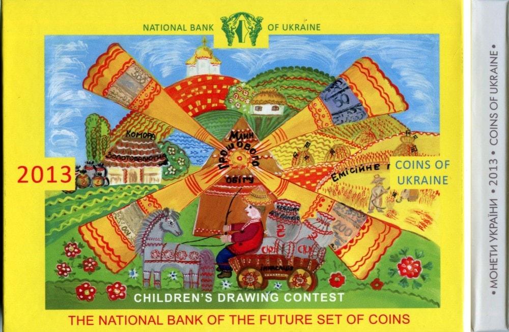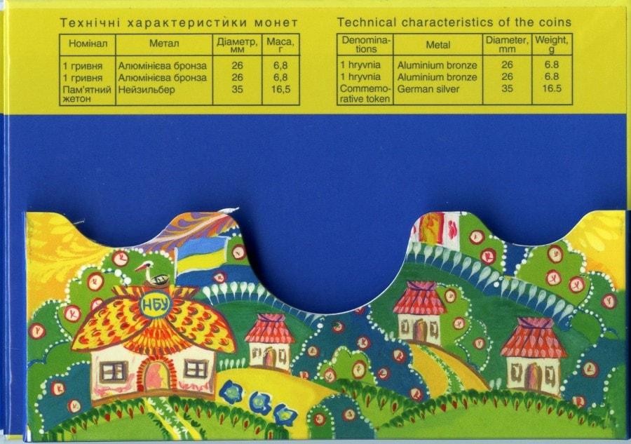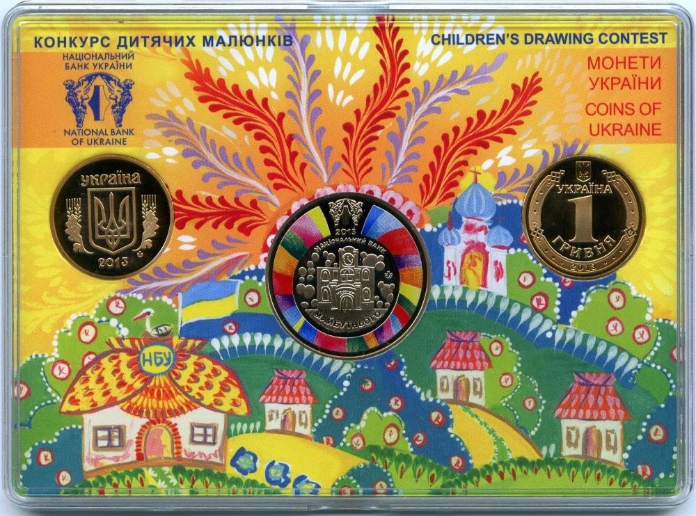 В набор вошли выпущенные в улучшенном качестве разменные монеты всех номиналов: 1 гривна 2013 обычной чеканки, 1 гривна 2013 «Владимир Великий», памятный жетон «Добро - детям»