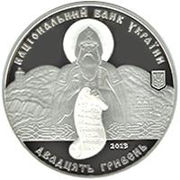 На аверсе монеты размещены: вверху надпись полукругом НАЦИОНАЛЬНЫЙ БАНК УКРАИНЫ, справа - малый Государственный Герб Украины, стилизованная композиция, в центре которой - Антоний Печерский на фоне скал, напоминающие крылья, внизу - древнерусский орнамент и надпись полукругом ДВАДЦАТЬ ГРИВЕН, справа - год чеканки монеты 2013.На реверсе монеты изображены: стилизованный фрагмент скального монастыря, крестный ход монахов и паломников, Голубя (вверху слева) и лучи, является символом Святого Духа, а также по окружности надписи - 1000/ЛЕТИЯ (вверху) ЛЯДОВСКИЙ СВЯТО-УСЕКНОВЕНСКИЙ СКАЛЬНЫЙ МОНАСТЫРЬ (по кругу).