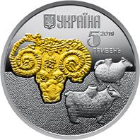 На аверсе монеты размещены: вверху малый Государственный Герб Украины, справа от которого надпись УКРАИНА, под ним-номинал 5/ГРИВЕН и год чеканки монеты 2019; в центре – позолоченное изображение металлического рельефа с изображением головы барана (Северное Причерноморье), справа от которого – памятники сарматской археологической культуры: две керамические сосуды в виде баранов из могильника Нейзац в Крыму.На реверсе монеты слева на зеркальном фоне изображено голову барана, справа от которого на матовом фоне размещена вертикальная надпись БАРАН (внизу) и изображение опошнянского керамического барана (Полтавщина).