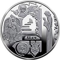 Посвящена монета Выдубицкому Свято-Михайловскому монастырю, основанному сыном князя Ярослава - Всеволодом на южной окраине Киева - в урочище Выдубичи. По летописи, название урочища происходит от слова "видибаты" - на этом месте выплыл деревянный идол бога Перуна, который был сброшен в Днепр у Старокиевской горы во время крещения Киевской Руси. Первым каменным храмом на территории монастыря была Михайловская церковь, возведенная в последней четверти XI в. В начале XII в. монастырь становится одним из центров летописания. К владениям монастыря принадлежали зверинецкие, лыбидские, наводницкие, осокорковские и другие земли с переправами на Днепре и его притоке Лыбеди. Монастырь принимал активное участие в политической жизни Киевской Руси. Именно здесь, возле Михайловской церкви, по традиции собирались на рать воинство. Современный ансамбль Выдубицкого монастыря является памятником архитектуры национального значения, сформировался с конца XVII - начала XVIII в., Когда в монастыре появляется несколько замечательных сооружений: один из лучших шедевров украинского барокко - Георгиевский собор, трапезная с храмом Преображения Господня, колокольня.
